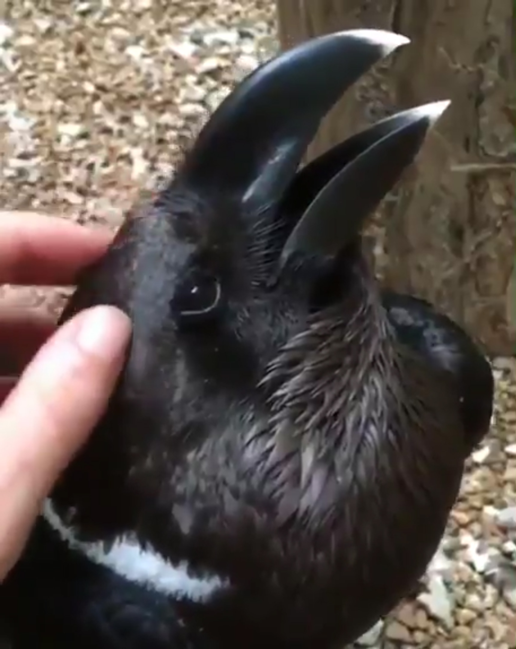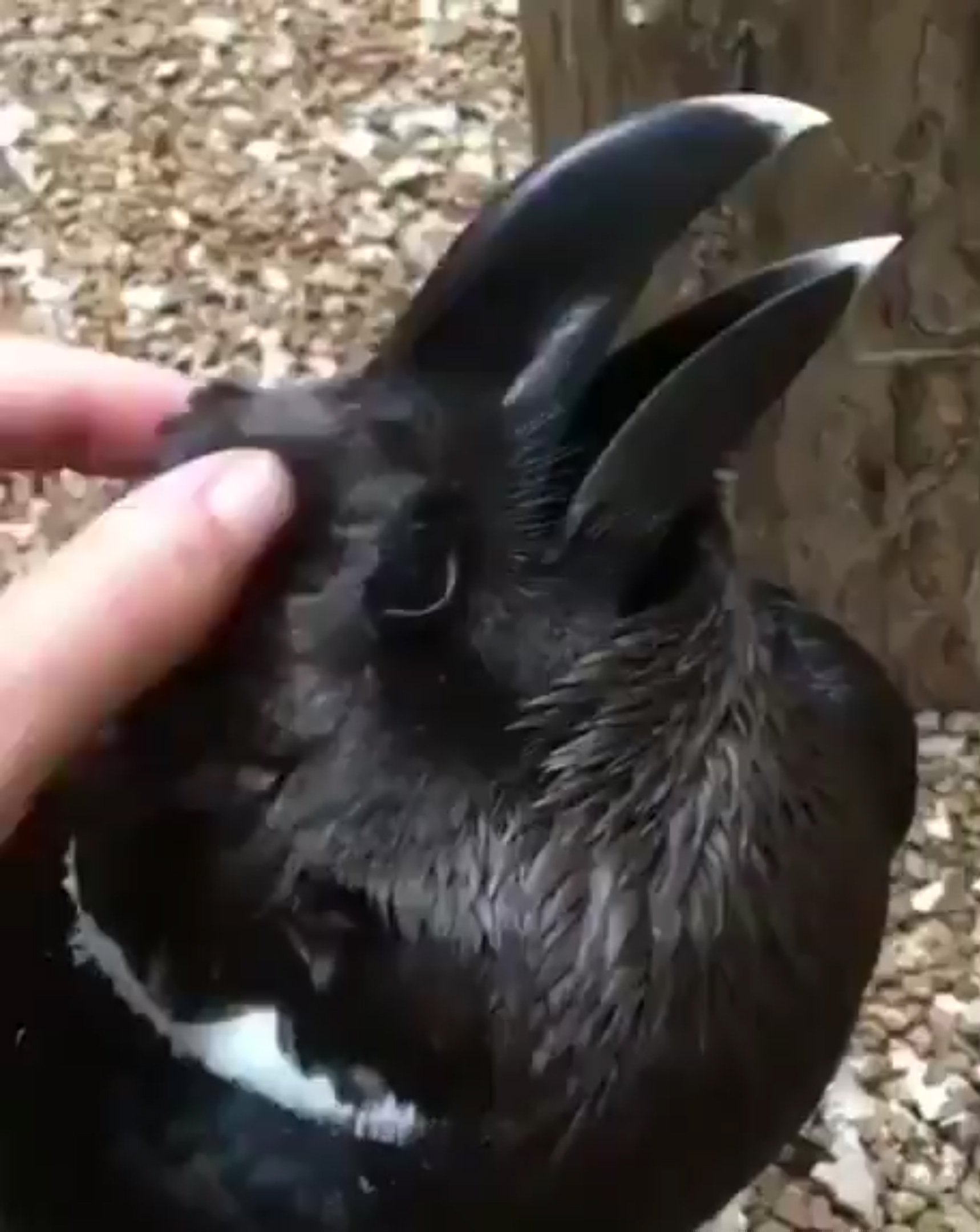 En effet, l’animal semble être un corbeau, mais aussi un lapin.