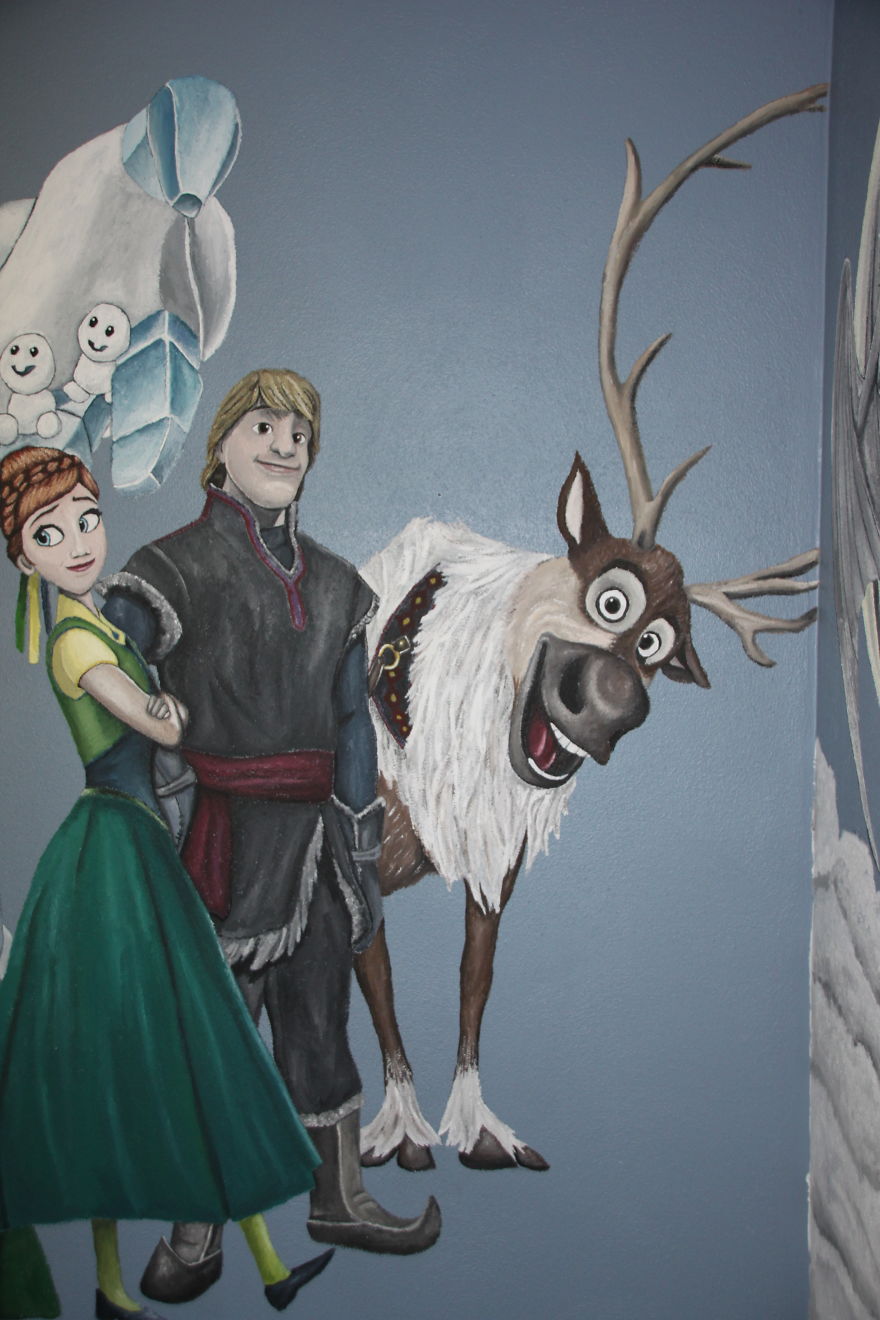 He used his talent to decorate the room with the two little girls’ favorite characters.
