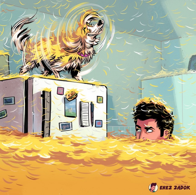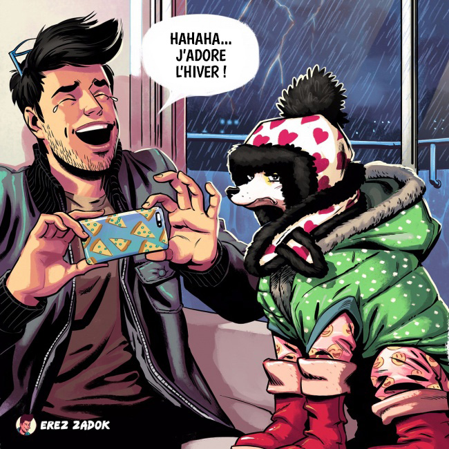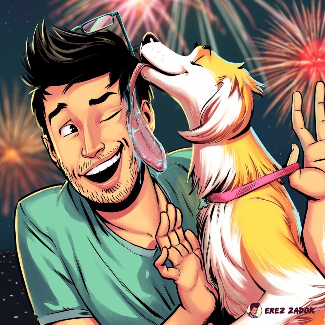 Vivre avec un chien apporte le bonheur et la joie de vivre. Nous avons de l’expérience dans ce domaine et nous ne sommes pas les seuls au monde! L’artiste Erez Zadok nous le prouve avec de superbes illustrations très amusantes!