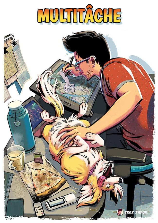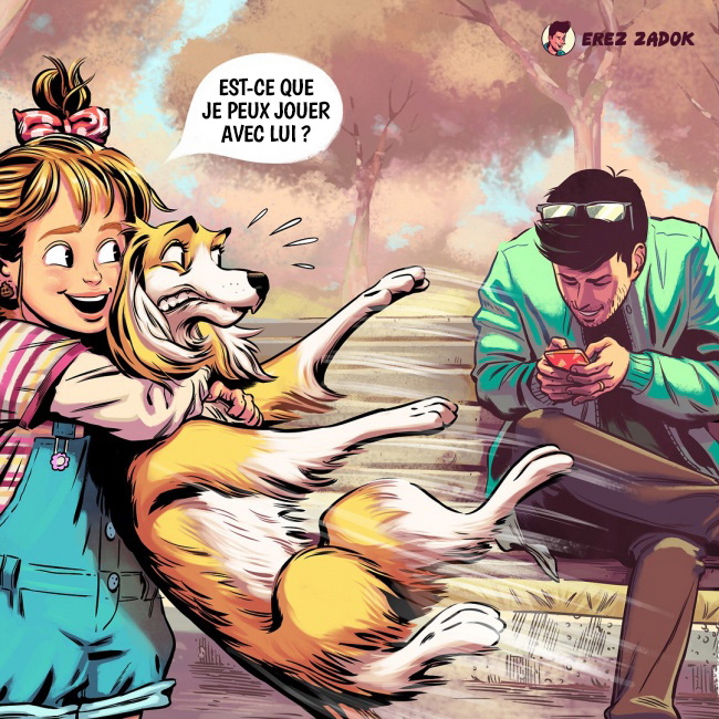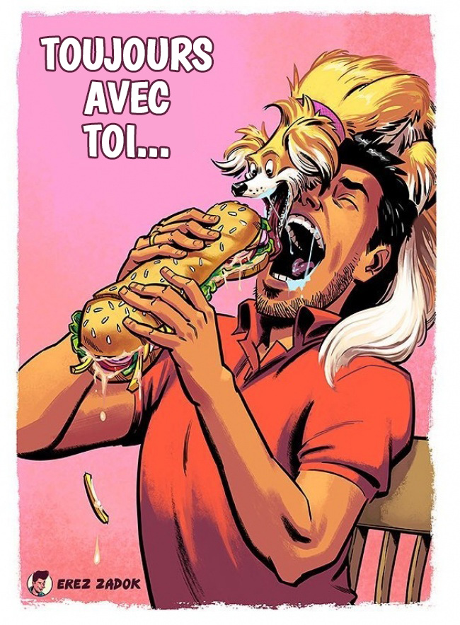 Living with a dog brings happiness and joie de vivre. We have experience in this field and we are not the only ones in the world! The artist Erez Zadok proves it with superb illustrations very funny!