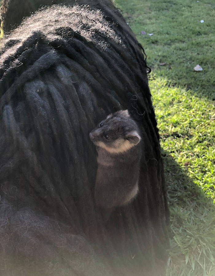 Un bébé opossum a trouvé refuge dans la fourrure d’un chien de race puli Hongrois. La découverte de ce petit marsupial a plongé la maîtresse de Kato dans une totale surprise, mais pas de panique, tout finit bien!
