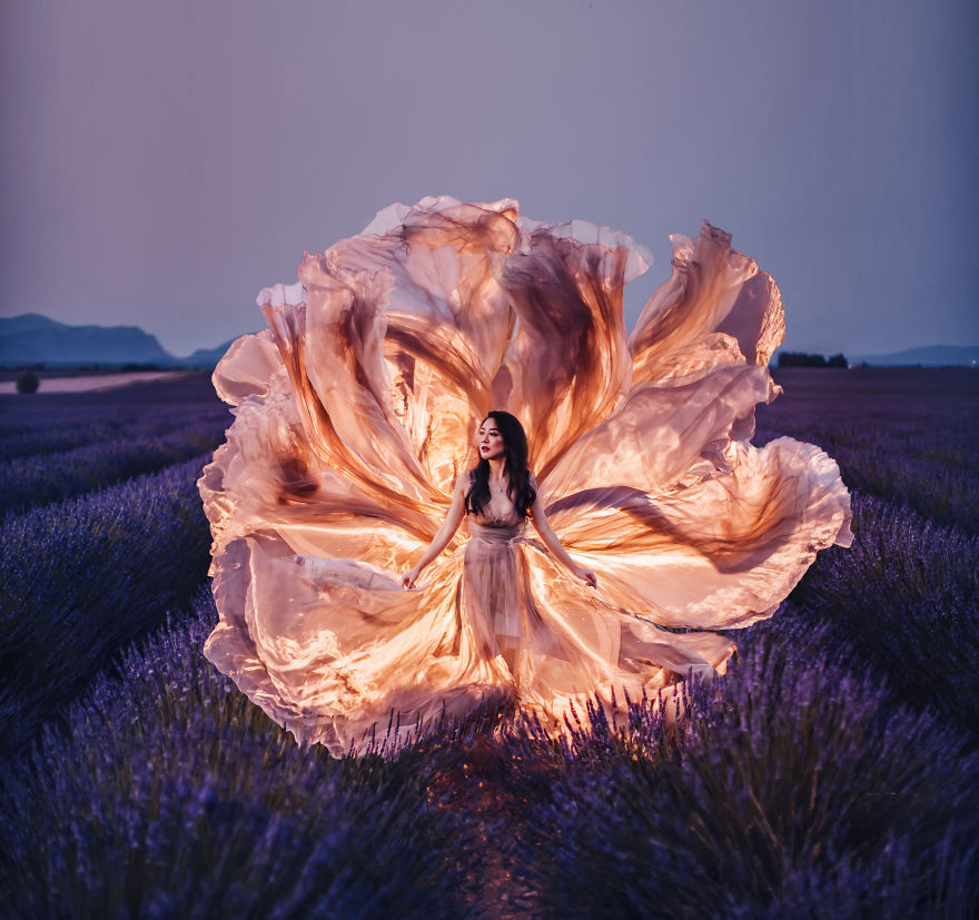 En effet, dans cette suite de photos, on va découvrir la combinaison de robes et de paysages grâce au talent et au travail de cette jeune photographe.