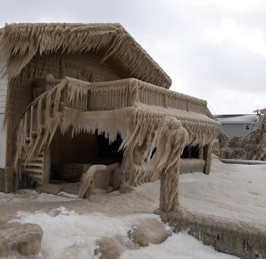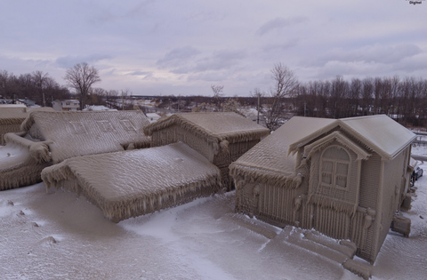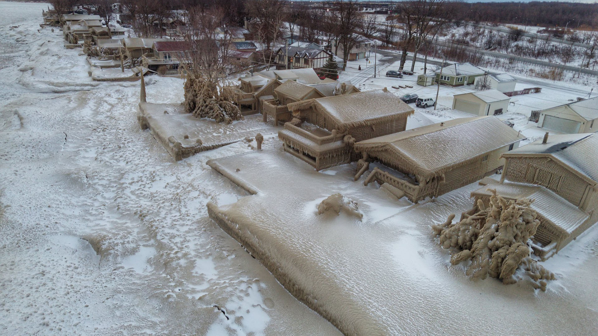 La glace s’est donc formée sur les maisons et les arbres, de même que sur tout le décor de cette région du lac Érié.