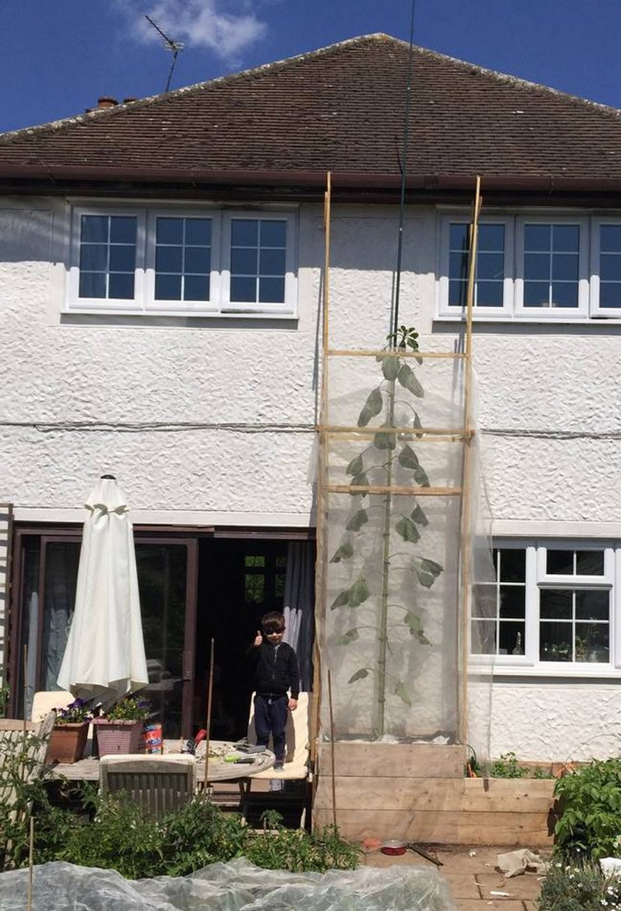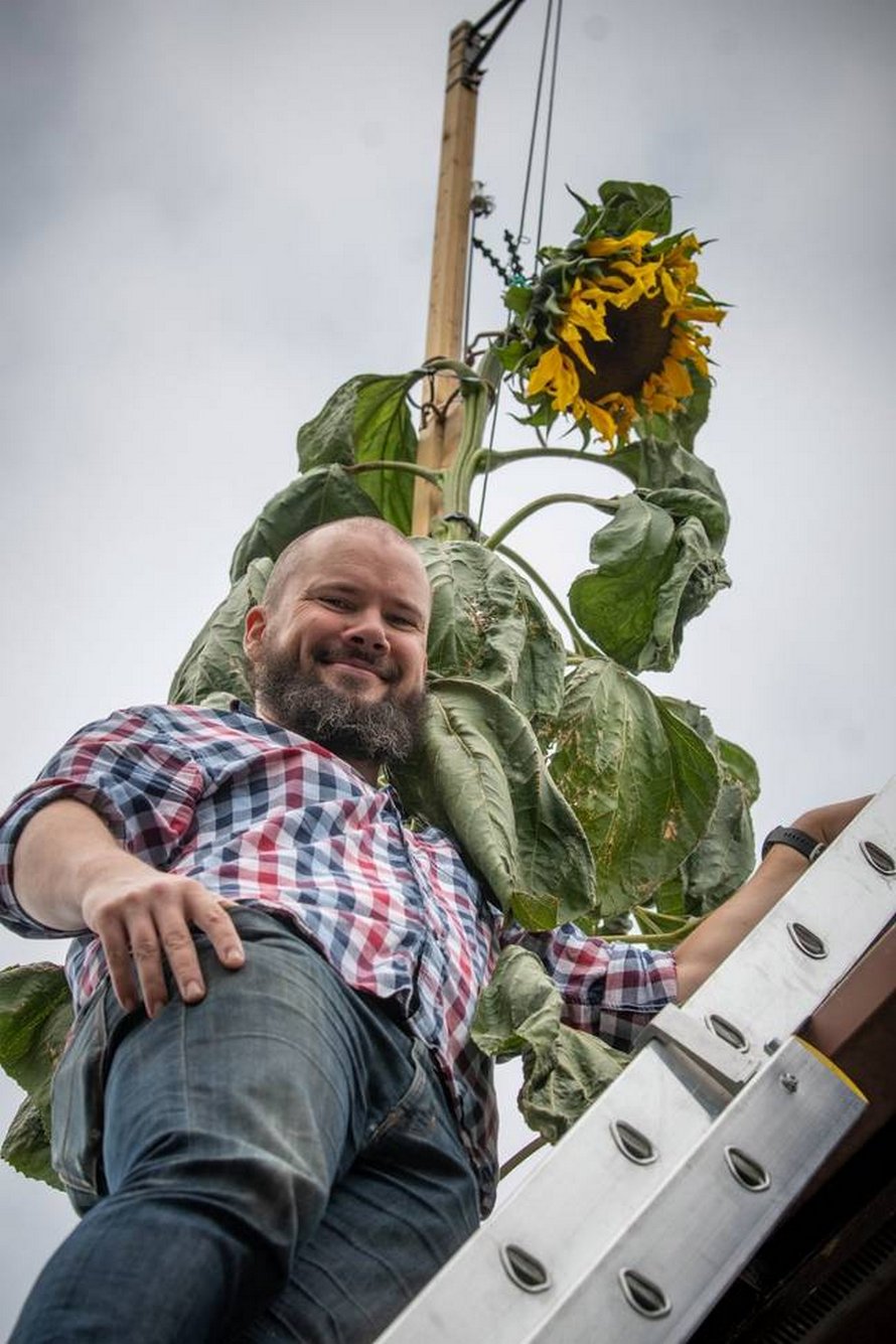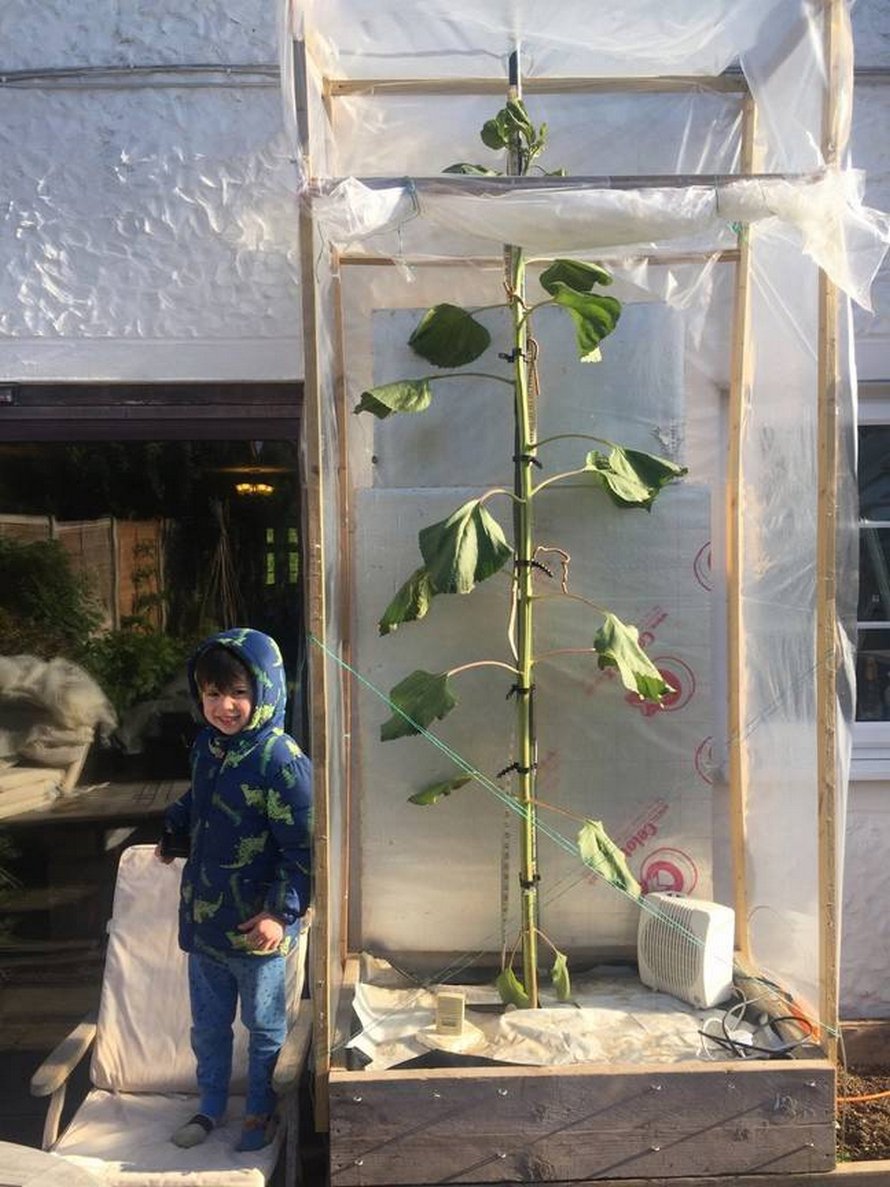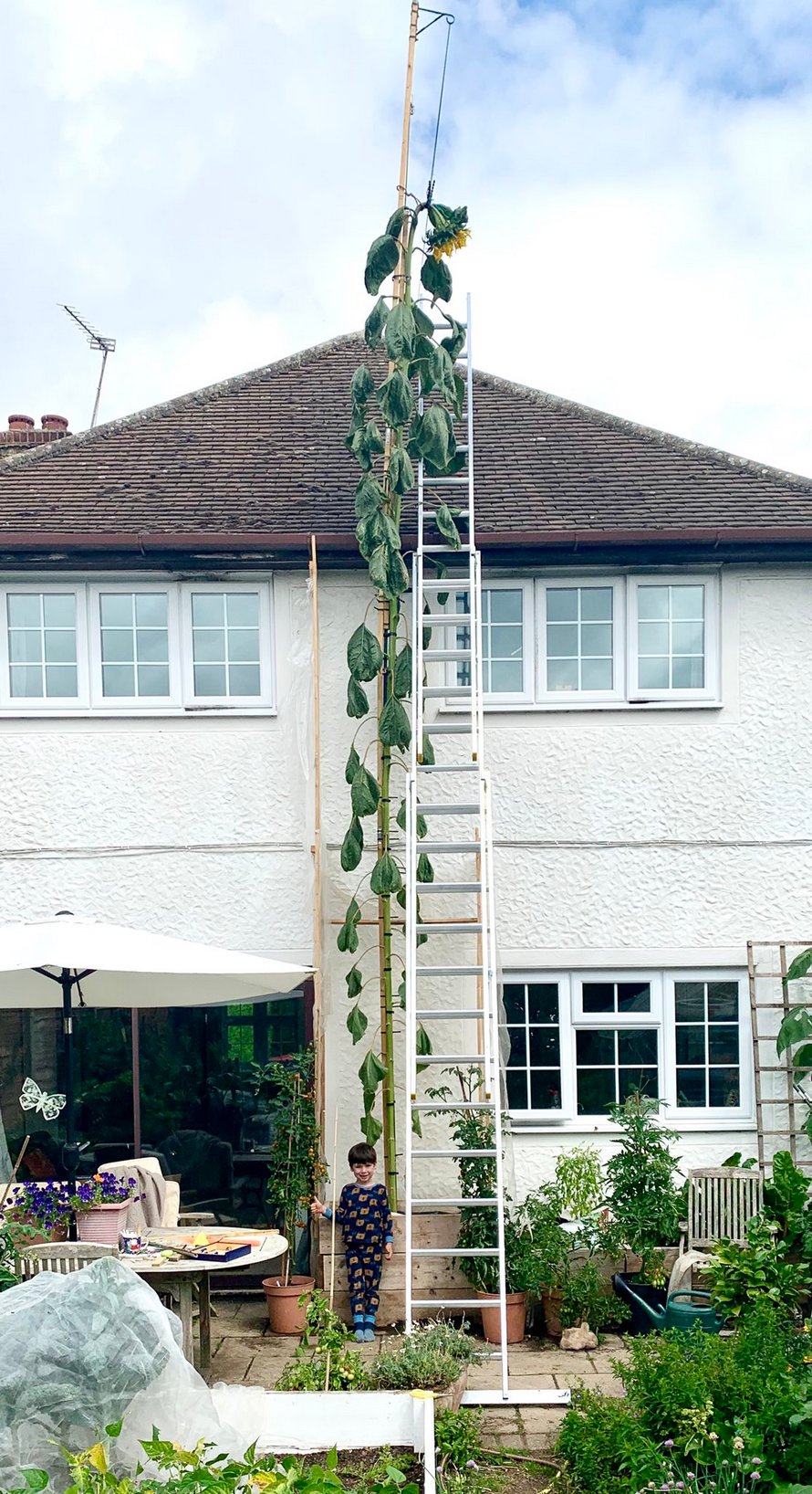 Douglas Smith a planté cette plante suite au désir de son fils Stellan qui voulait avoir un tournesol plus haut que la maison.
